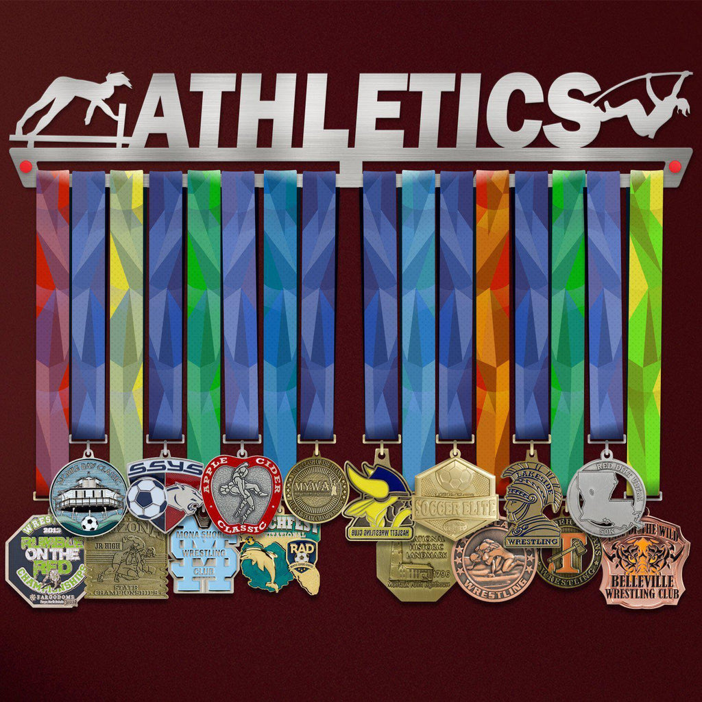 Previous Product Next ProductLe présentoir à médailles d'athlétisme femelle est un support brossé en acier inoxydable qui se fixe parfaitement au mur et met en valeur vos médailles d'athlétisme les plus précieuses. Ce présentoir à médailles peut être le chef-d'œuvre de votre collection de médailles. Que vous pratiquiez l'athlétisme ou un autre sport...